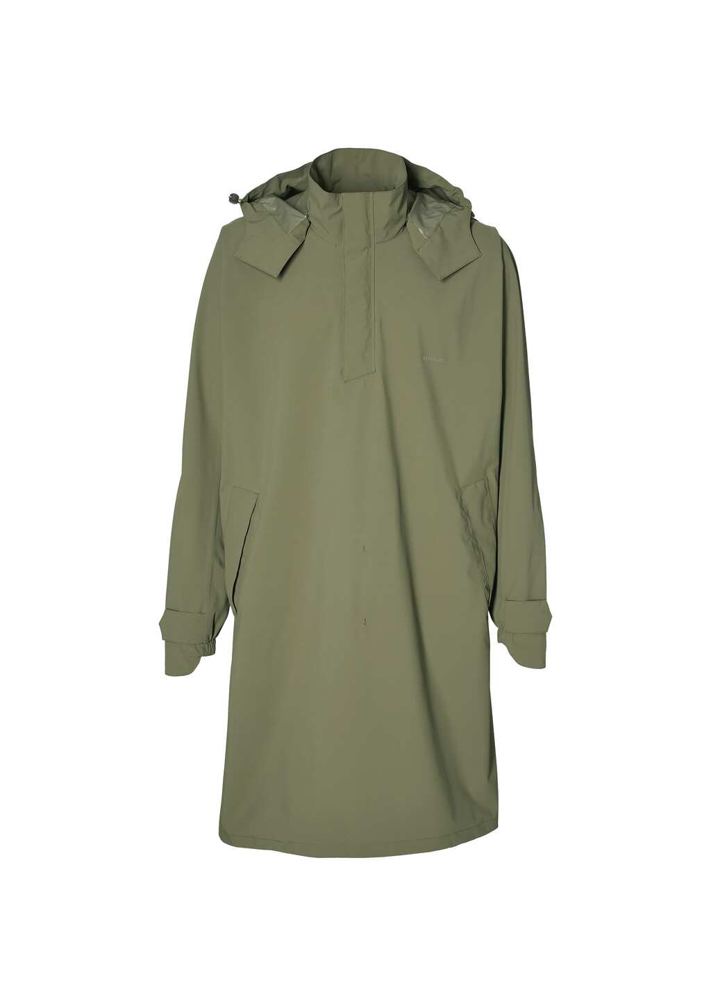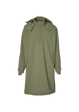 Basil Mosse fietsregenponcho unisex, T-Fabric: 5.000 WP/ 5.000 MVP, DWR coating, mouwen verlengd, capuchon, ruime sluiting, steekzakken, voor -en achterzijde te verbinden zodat broekspijp ontstaat, inclusief pouch, ton sur ton reflectie, XL/XXL, olive green